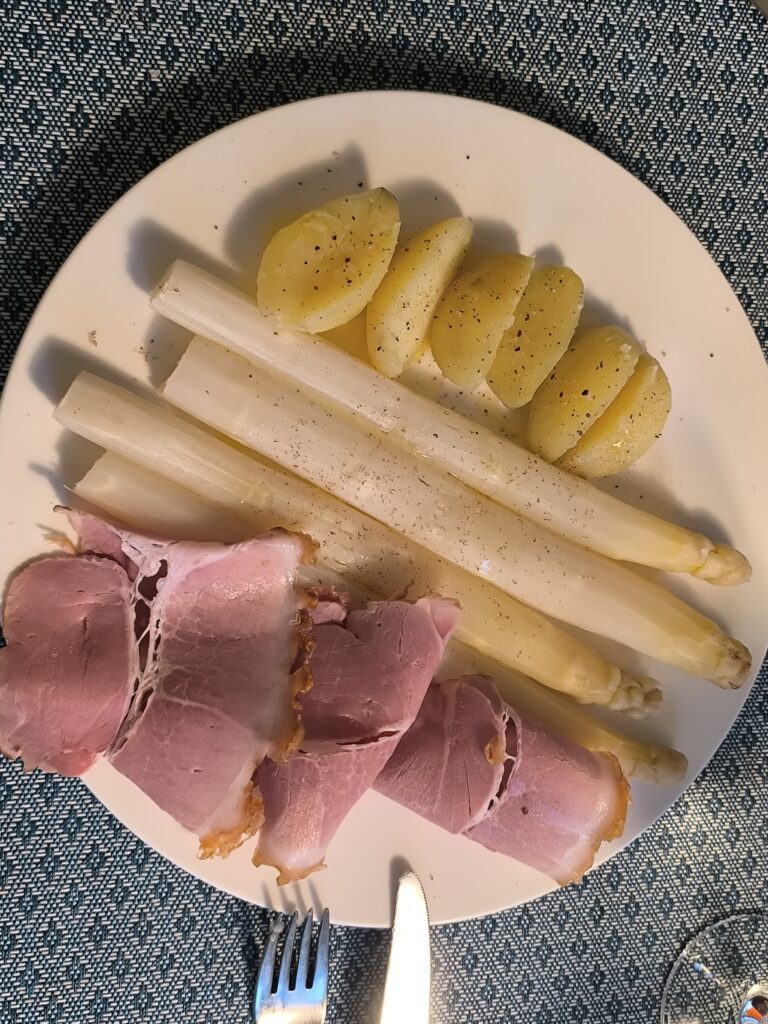Am Montag gab es Pimiento del Padron, danach eröffneten wir die Spargelsaison 2022 mit Spargel, Salzkartoffeln und Schinken. Der Nachtisch war aufgrund der hohen Nachfrage wie am Vortag.